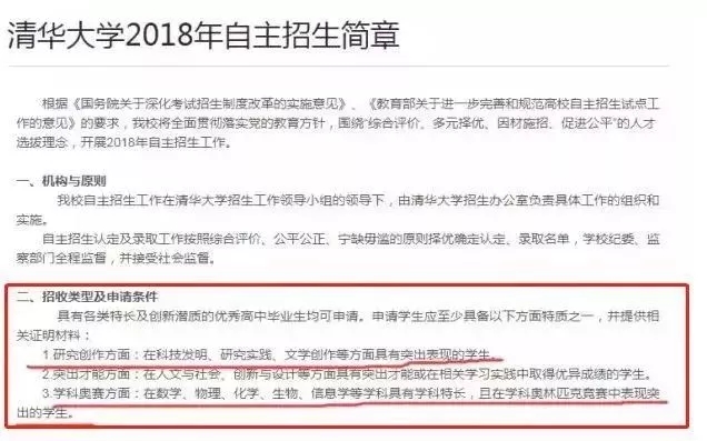2018年清華大學(xué)自主招生簡章