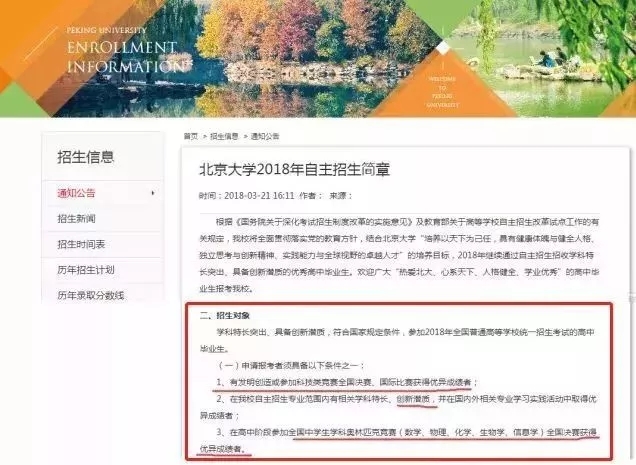 2018年北京大學(xué)自主招生簡章